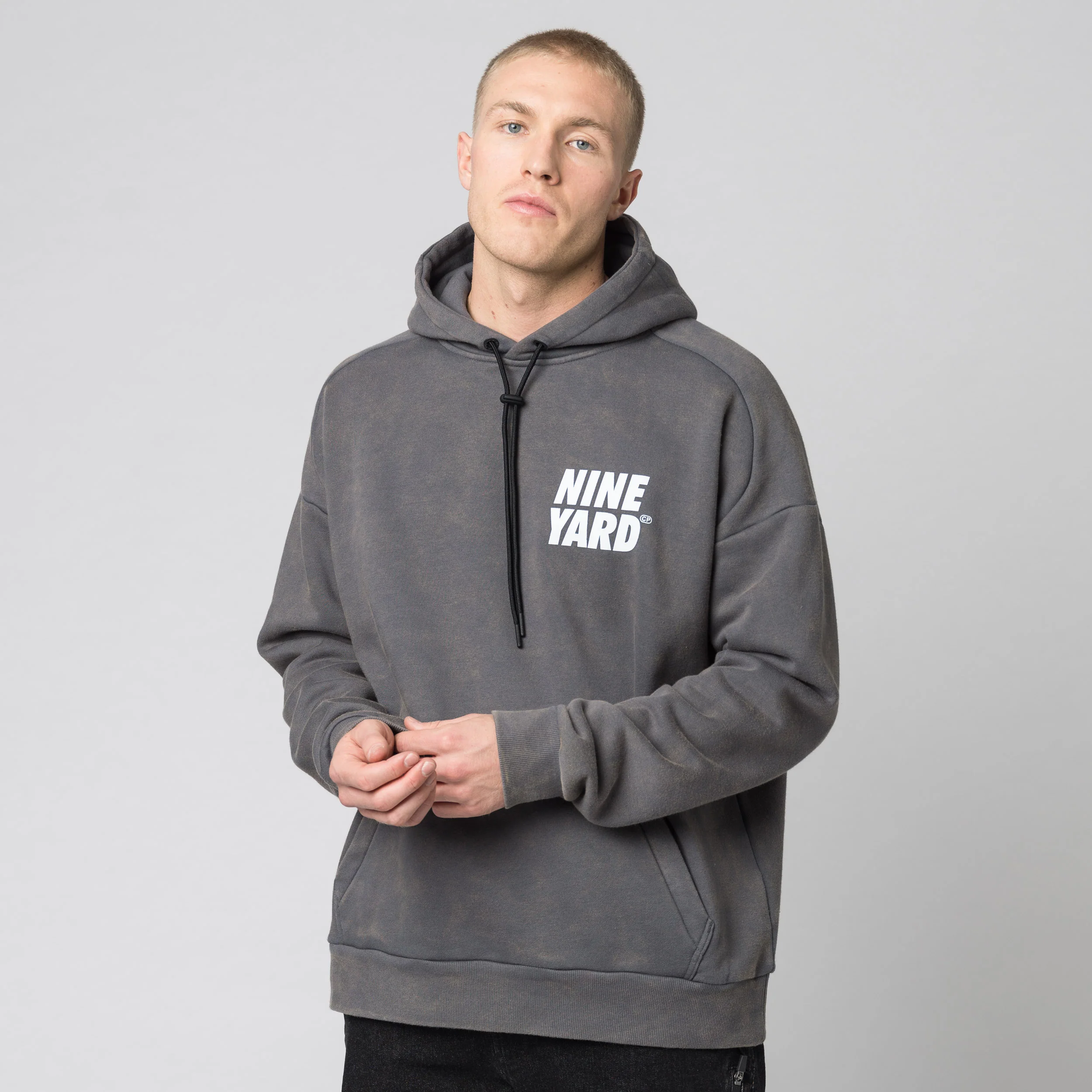 Der CP STREET. Oversize Hoodie aus besonderem Materialmix mit großem Photo-Print auf dem Rücken. Die doppellagige Kapuze ist am Kopf und Hals fixierbar und schützt vor Wind und Kälte. Aufgesetzte Fronttasche mit verdeckten Reißverschlüssen.